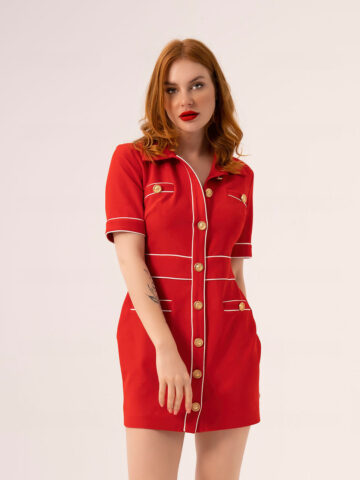 Elevate your style with this chic woven dress, featuring a flattering V-neckline and wrap-around design, highlighted by ornate button embellishments. Available in classic black and pristine white, it seamlessly blends modern design with timeless elegance. Perfect for any occasion, this dress is a must-have for the fashion-savvy woman.